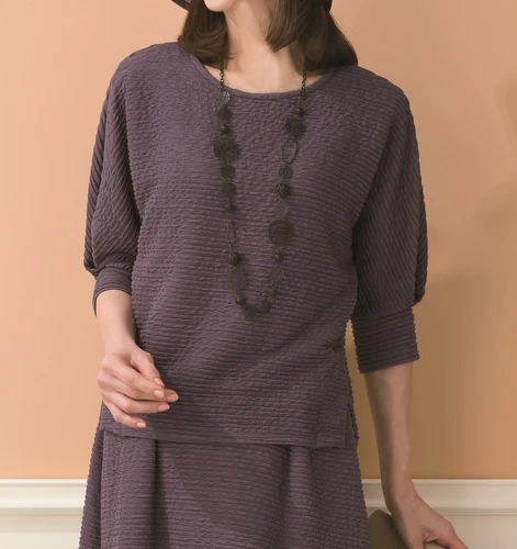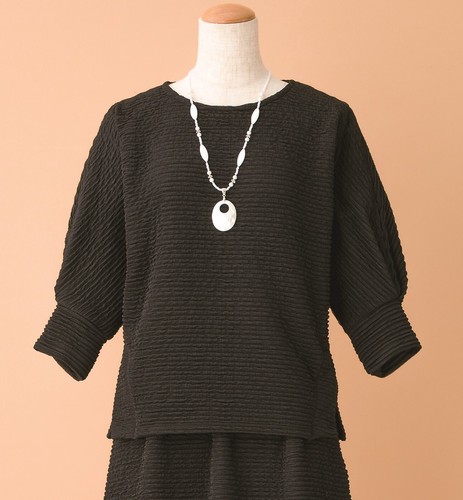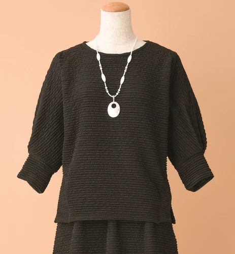 ゆったりとした着心地のドルマン袖 凹凸感のありジャカード素材で肌離れがよく、さらっとした肌触り。