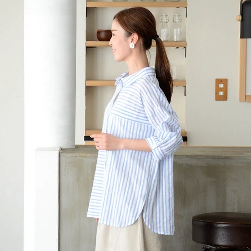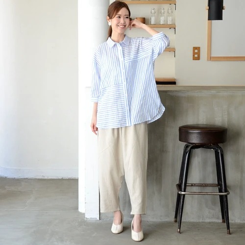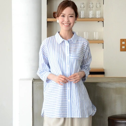 / 【売れ筋アイテム!】ストライプ透かし柄肩落ち7分袖シャツ(M90293C)