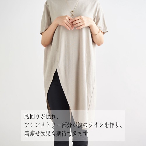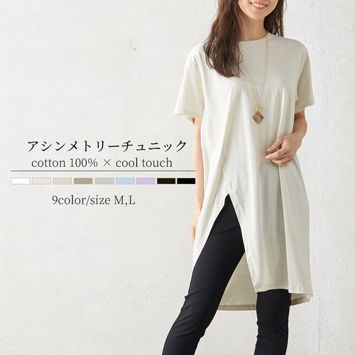 新色追加!日本製 綿100% ひんやり 冷感アシンメトリーチュニック