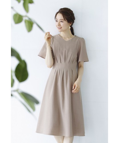 【洗濯機で洗える♪】リネンライク・麻調メランジ・フィット&フレアーワンピース/722274