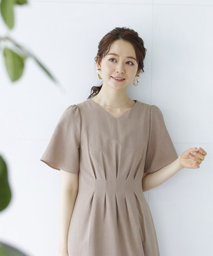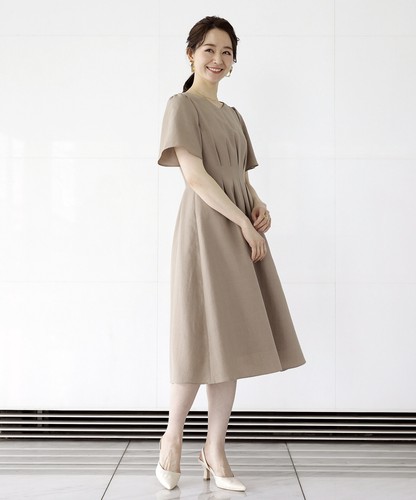 ●リネンライク・麻調メランジフィット&フレアーワンピース