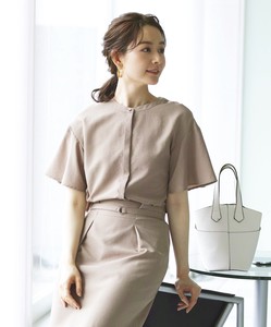 ●リネンライク・麻調メランジフレアースリーブブラウス