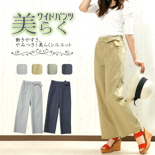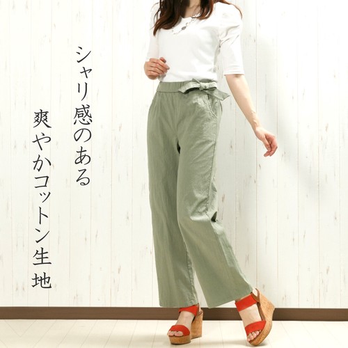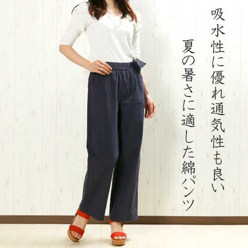 程よくピシっとした綿生地でスッキリ見せる セミワイドパンツ 股下65cm 夏