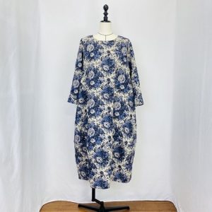 212044 長袖裾切替えコクーンワンピース 3カラー リネン クラシック花柄