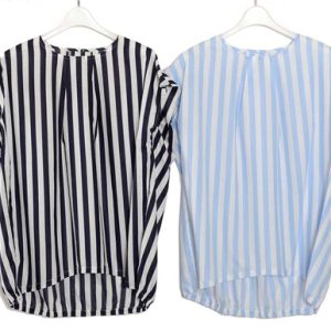 【売れ筋アイテム!】ストライプ透かし柄肩落ち7分袖シャツ(M90293C)