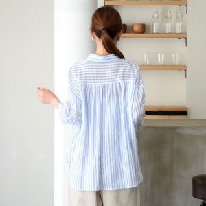 【日本製】ストライプ柄タック仕様ドロップ袖ブラウス(B62022)