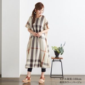 【インド製】コットンリネンチェックワンピース